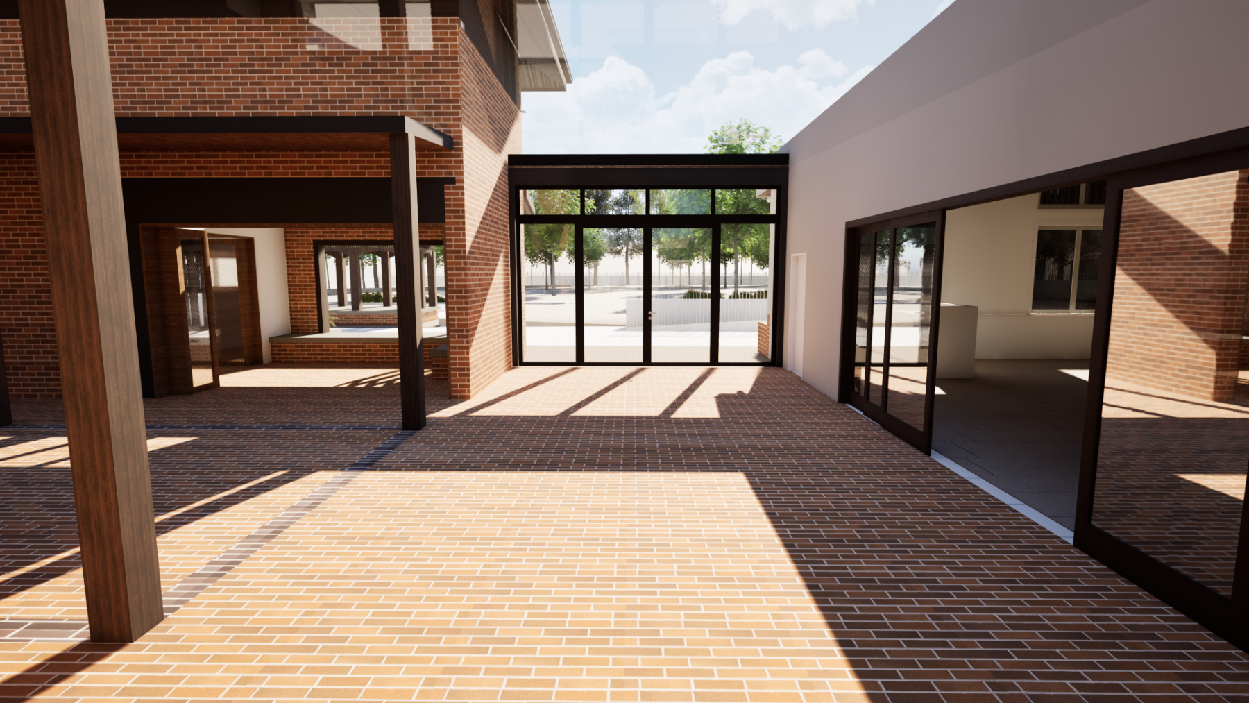 A view looking towards the entrance of the hall shows the hall on the right-hand side.